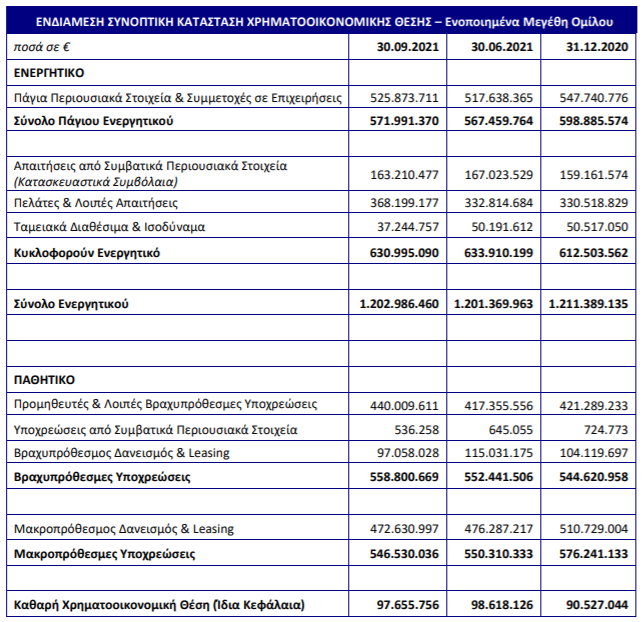 Ο κύκλος εργασιών του Ομίλου στο εννεάμηνο του 2021 ανήλθε σε €521,0 εκ καταγράφοντας αύξηση 38,7% σε σχέση με €375,7 εκ στην αντίστοιχη περίοδο του 2020, ενώ στο γ’ τρίμηνο του 2021 ο ενοποιημένος κύκλος εργασιών ανήλθε σε €196,7 εκ σημειώνοντας άνοδο 70% έναντι €115,7 εκ στο συγκρίσιμο τρίμηνο του 2020.