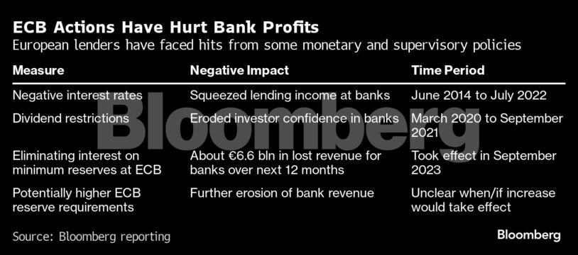 Η κίνηση αυτή, εφόσον υλοποιηθεί, θα επιδεινώσει περαιτέρω τις σχέσεις μεταξύ της ΕΚΤ και των ευρωπαϊκών τραπεζών, οι οποίες έχουν πολλάκις παραπονεθεί για υπερβολική εποπτεία, τη στιγμή που προσπαθούν να παραμείνουν ανταγωνιστικές σε σχέση με τις αμερικανικές. Παράλληλα, θα γιγαντώσει τα προβλήματα τα οποία αντιμετωπίζουν, από τους ειδικούς φόρους που επιβάλλονται στις τράπεζες της Ευρωζώνης. Η chief financial officer της Commerzbank AG, Μπετίνα Όρλοπ, αποκάλεσε την πρόταση αυτή «τρελή».