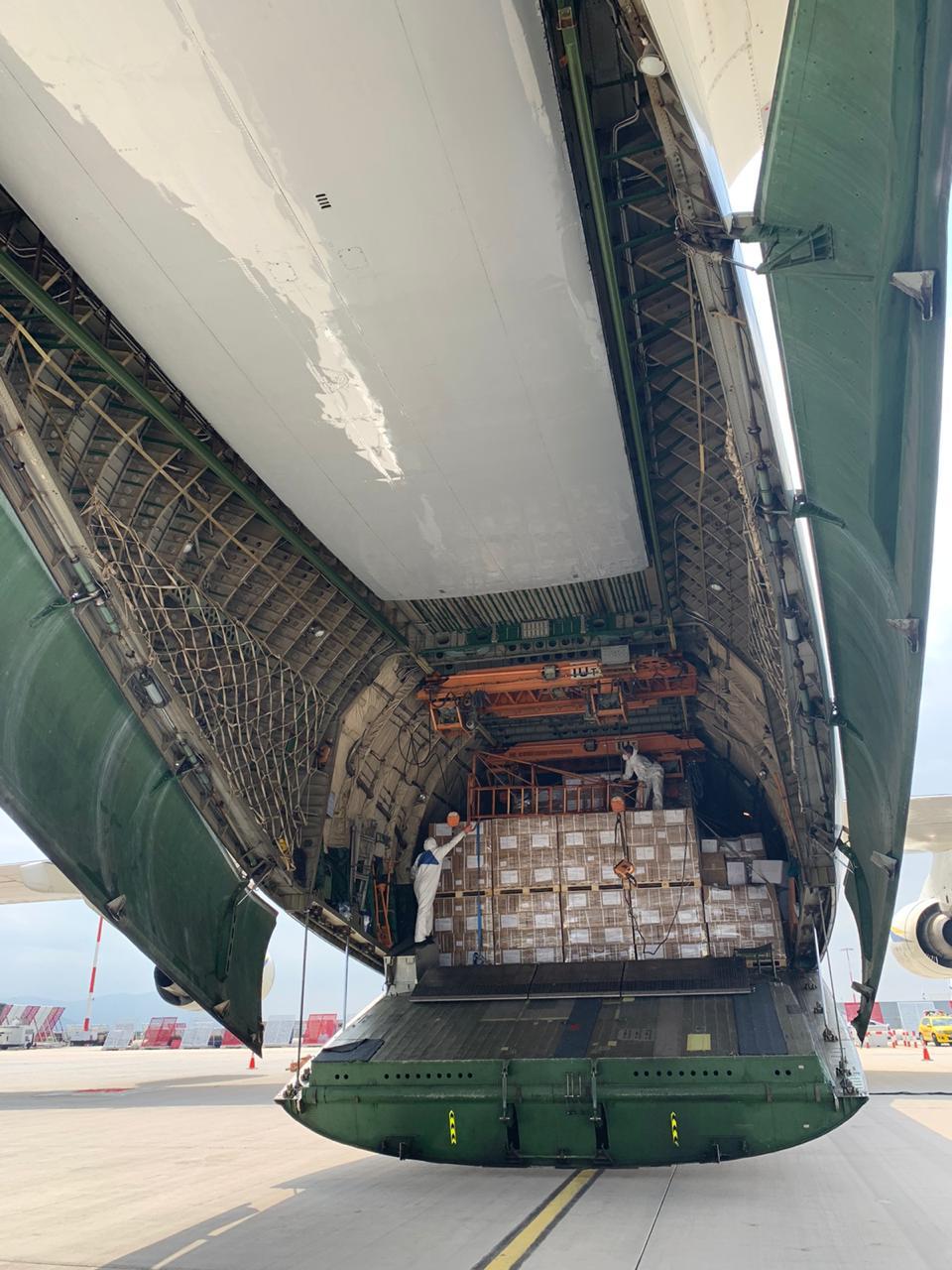 Ειδικά ναυλωμένο μεταφορικό αεροσκάφος Antonov μετέφερε σήμερα στο Αεροδρόμιο Ελευθέριος Βενιζέλος φορτίο 80 τόνων υγειονομικού υλικού από το Tianjin της Κίνας για λογαριασμό του Υπουργείου Υγείας.
